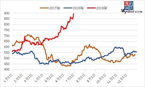 所以從主要價格因素的變化也能看出來它在逐漸的轉變,從供應主導開始向需求主導轉移,對于目前和2019年下半年的市場價格,也需要去尋覓供需關系的“軌道”如何鋪墊,不妨從原材料的供需開始,再看鋼材的消費力度,從而推到出未來供需走勢。
